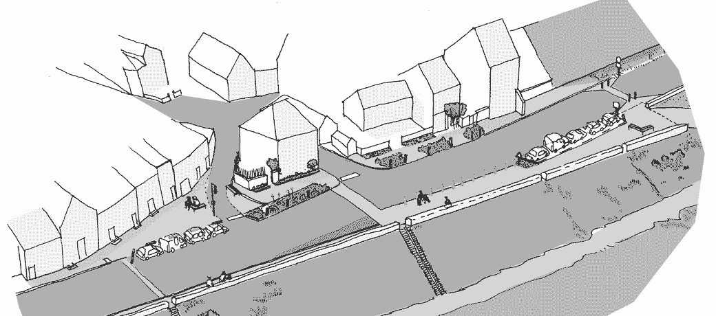 Le monument aux morts de Theuville est implanté au carrefour de deux rues, en situation de proue. Une forte pente permet difficilement aux piétons de traverser cet espace. La commune souhaite aménager un espace public autour de ce monument afin d'en améliorer la fonctionnalité et