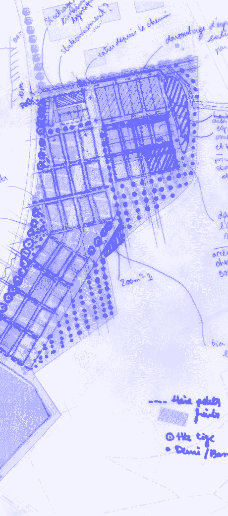 Dans le bourg historique de Magny-le-Hongre, nous sommes sollicités par le promoteur GreenEco pour concevoir la manière d’habiter une prairie d’un peu plus de 3000m2. Notre intervention commence par un travail à l’échelle réglementaire destiné à redéfinir l’Orientation d’Aménagement et de Programmation en vigueur sur
