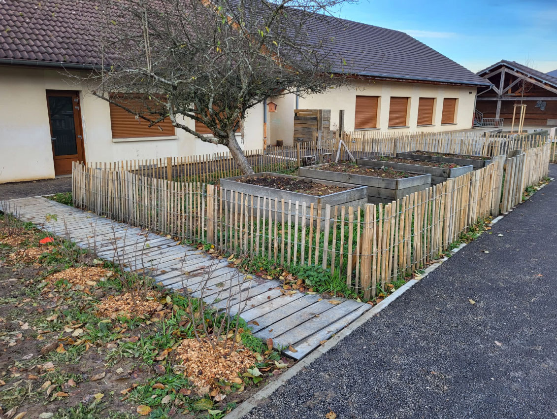 L’appel à projet «un coin de verdure pour la pluie» lancé par l’Agence de l’Eau Rhône Méditerrannée Corse a pour but de proposer une gestion alternative des eaux pluviales dans les cours d’école. Dans les deux cours d’école de Moncey et Pouligney Lusans, c’est aussi l’opportunité d’agir sur d’autres enjeux et de redessiner les lignes de la future cour aux côtés de l’équipe pédagogique et des élèves. Le projet propose d’accueillir la biodiversité de rafraîchir les abords des salles de classe par des plantations adaptées tout en ménageant des zones plus sauvages dédiées à l’observation de la faune et la flore. La nouvelle gestion hydraulique qui consiste en la désimperméabilisation du sol, la déconnexion d’un maximum de toitures du réseau ainsi que le stockage de l’eau devient également le support d’une pédagogie sur le cycle de l’eau, les notions de graduation et de volumes. Ce projet propose un nouveau rapport au sol, à l’eau et à la nature. Il permet de diversifier les usages en organisant des espaces calmes et sportifs dans des situations sauvages ou jardinés, ombragés ou ensoleillés.